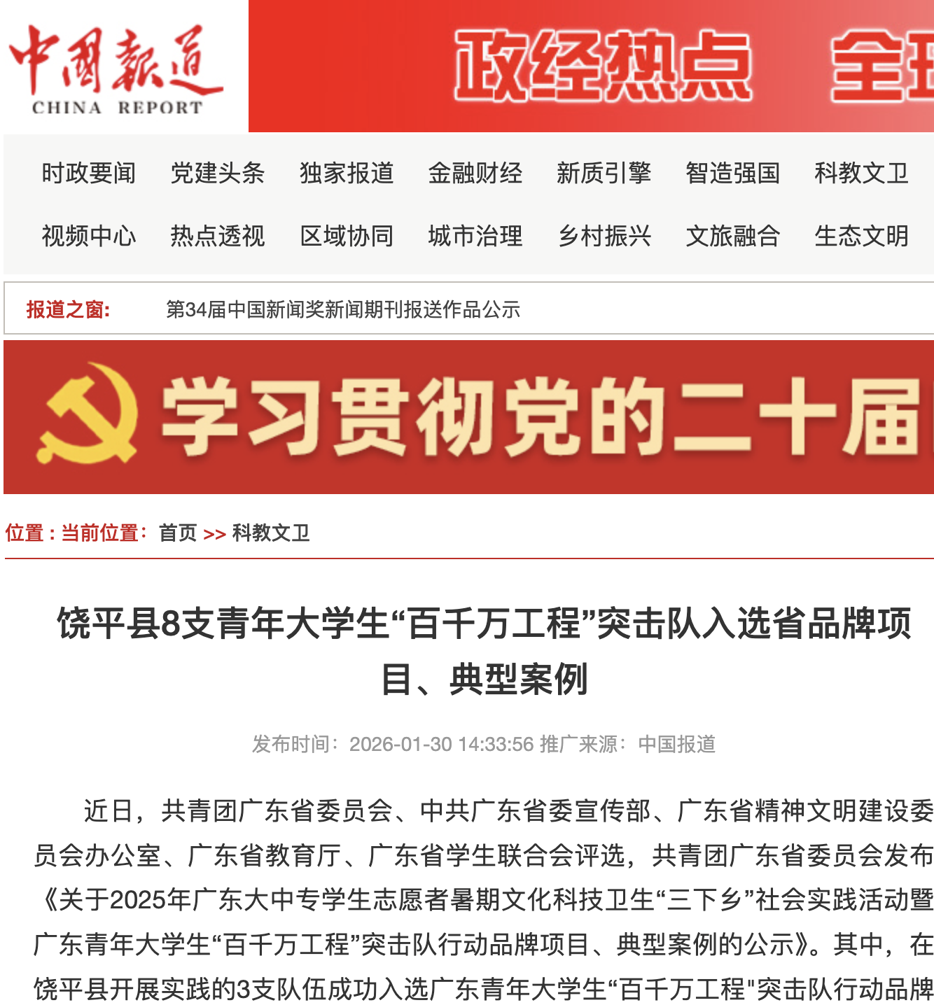 近日,共青團廣東省委員會、中共廣東省委宣傳部、廣東省精神文明建設(shè)委員會辦公室、廣東省教育廳、廣東省學(xué)生聯(lián)合會評選,共青團廣東省委員會發(fā)布《關(guān)于2025年廣東大中專學(xué)生志愿者暑期文化科技衛(wèi)生“三下鄉(xiāng)”社會實踐活動暨廣東青年大學(xué)生“百千萬工程”突擊隊行動品牌項目、典型案例的公示》。其中,在饒平縣開展實踐的3支隊伍成功入選廣東青年大學(xué)生“百千萬工程"突擊隊行動品牌項目,5支隊伍成功入選廣東青年大學(xué)生“百千萬工程”突擊隊行動典型案例,以扎實實績彰顯青春擔(dān)當(dāng)。