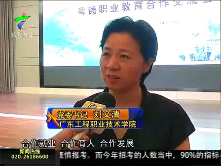 6月24日上午,由我院承辦的粵德職業(yè)教育合作交流會在廣州召開。當(dāng)晚8點(diǎn),省有線16臺、珠江數(shù)碼45臺廣東衛(wèi)視教育頻道在《廣東教育新聞》播出了粵德職教會議和采訪劉文清書記的新聞。