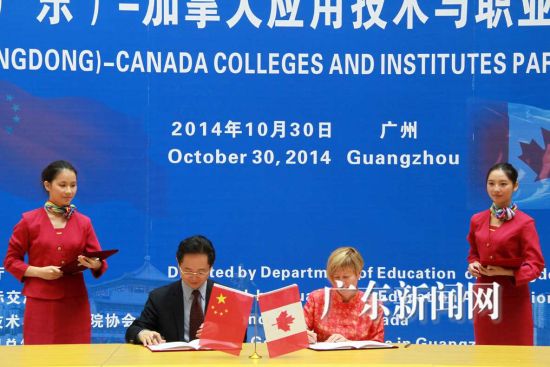 廣東新聞網(wǎng)廣州10月31日電 (張習(xí)濤)中國(guó)(廣東)-加拿大應(yīng)用技術(shù)與職業(yè)院校對(duì)接會(huì)30日在廣東工程職業(yè)技術(shù)學(xué)院舉行,廣東38所職業(yè)院校與加拿大16所職院"相親"。雙方學(xué)校代表面對(duì)面的交流,達(dá)成廣泛共識(shí)。