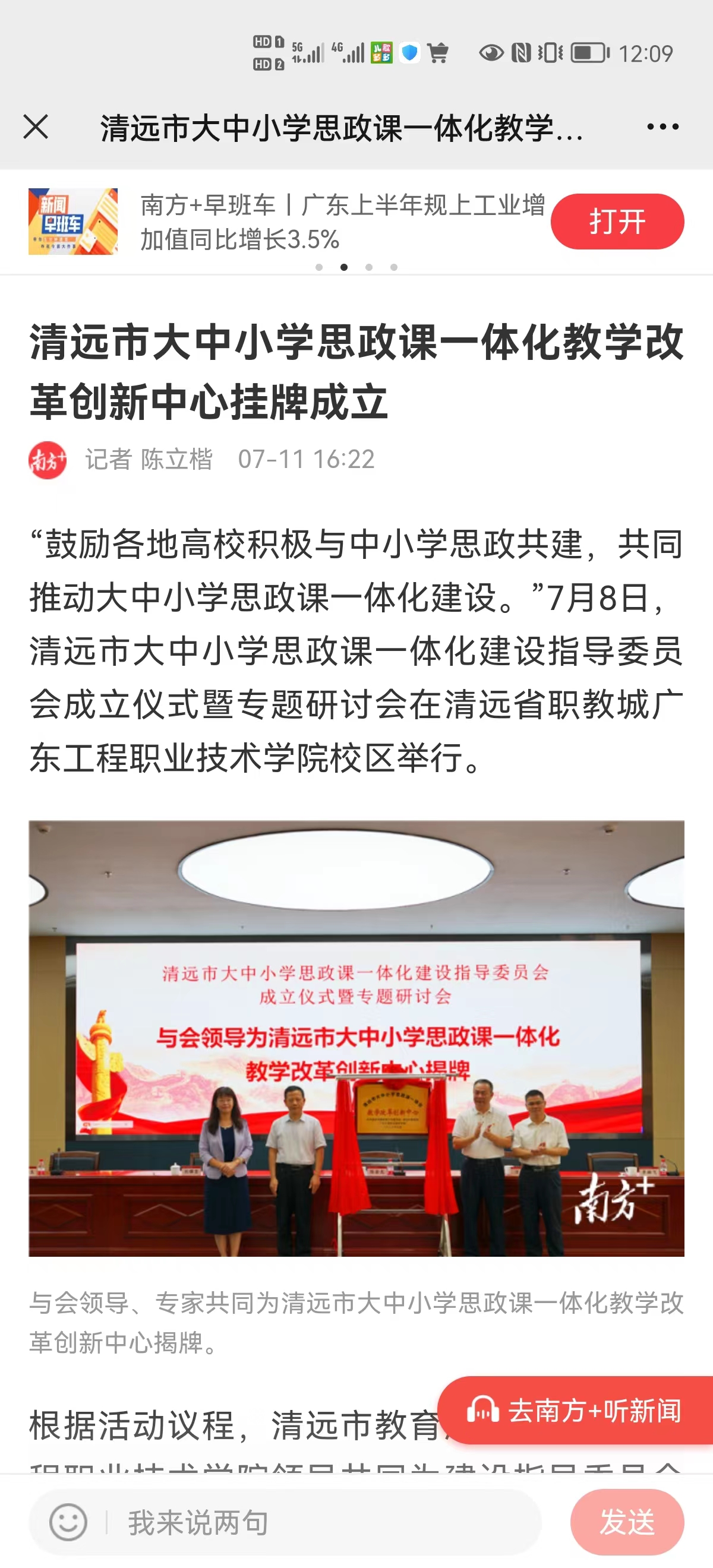 “鼓勵各地高校積極與中小學思政共建,共同推動大中小學思政課一體化建設。”7月8日,清遠市大中小學思政課一體化建設指導委員會成立儀式暨專題研討會在清遠省職教城廣東工程職業(yè)技術學院校區(qū)舉行。