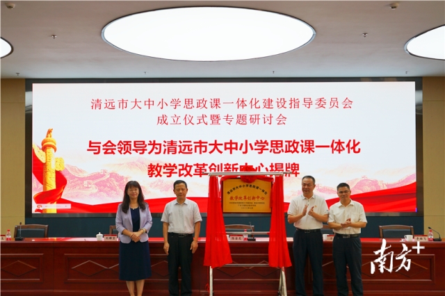 與會領導、專家共同為清遠市大中小學思政課一體化教學改革創(chuàng)新中心揭牌。