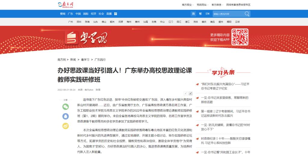追尋南下廣東紅色足跡、探尋“中央紅色秘密交通線”廣東段、深入粵東鄉(xiāng)村振興典型村新山村開展調(diào)研……近日,由廣東省教育廳主辦,廣東省高校思政課方燕名師工作室、廣東工程職業(yè)技術(shù)學(xué)院馬克思主義學(xué)院承辦的2022年全省高校思想政治理論課教師實(shí)踐研修班(第1、2期)順利舉辦。來(lái)自全省各地高校馬克思主義學(xué)院的領(lǐng)導(dǎo)、名師工作室學(xué)員及思政課骨干教師等共80多名學(xué)員參加了實(shí)踐研修班學(xué)習(xí)。