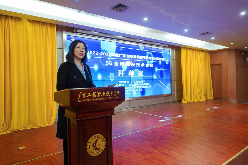 廣東工程職業(yè)技術(shù)學(xué)院校長李麗表示,希望通過職業(yè)技能競賽促進(jìn)學(xué)生5G全網(wǎng)建設(shè)的綜合能力,提高5G通信類高技能人才的培養(yǎng)質(zhì)量,提升高等職業(yè)院校整體辦學(xué)水平,培養(yǎng)更多高素質(zhì)技術(shù)技能人才、能工巧匠、大國工匠。