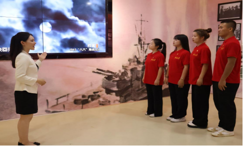 紀(jì)念館人員李大邦為學(xué)生介紹李沛群同志的事跡