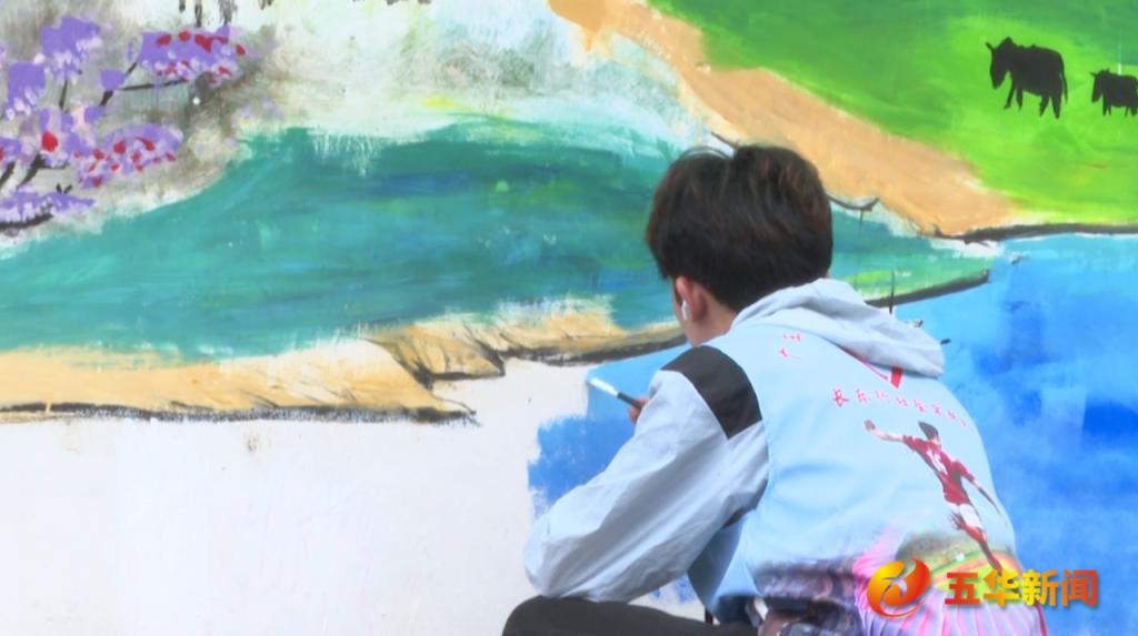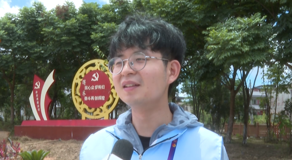 【龍村鎮(zhèn)湖中村村民 鐘任洋:(感覺)相當(dāng)好,他們?yōu)楹写遄龀龊艽蟮呢暙I(xiàn),像小公園的繪畫,都不遺余力的畫的非常好,為大學(xué)生志愿者點(diǎn)贊。】