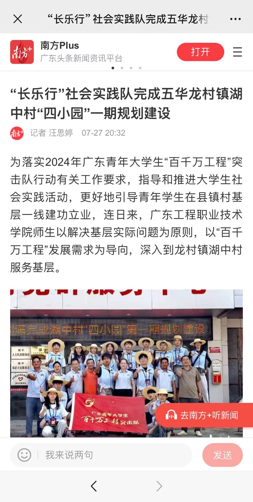 為落實(shí)2024年廣東青年大學(xué)生“百千萬工程”突擊隊(duì)行動有關(guān)工作要求,指導(dǎo)和推進(jìn)大學(xué)生社會實(shí)踐活動,更好地引導(dǎo)青年學(xué)生在縣鎮(zhèn)村基層一線建功立業(yè),連日來,廣東工程職業(yè)技術(shù)學(xué)院師生以解決基層實(shí)際問題為原則,以“百千萬工程”發(fā)展需求為導(dǎo)向,深入到龍村鎮(zhèn)湖中村服務(wù)基層。