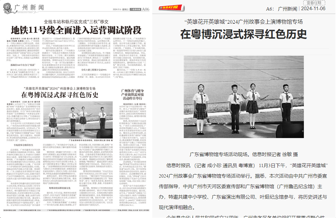 信息時(shí)報(bào)訊(記者成小珍通訊員粵博宣)11月3日下午,“英雄花開英雄城”2024廣州故事會(huì)廣東省博物館專場(chǎng)活動(dòng)舉行。據(jù)悉,本次活動(dòng)由中共廣州市委宣傳部指導(dǎo),中共廣州市天河區(qū)委宣傳部和廣東省博物館(廣州魯迅紀(jì)念館)主辦,特邀共建中小學(xué)校、廣東省演出有限公司、葉挺紀(jì)念館參與,將歷史講述與現(xiàn)代演繹相融合。