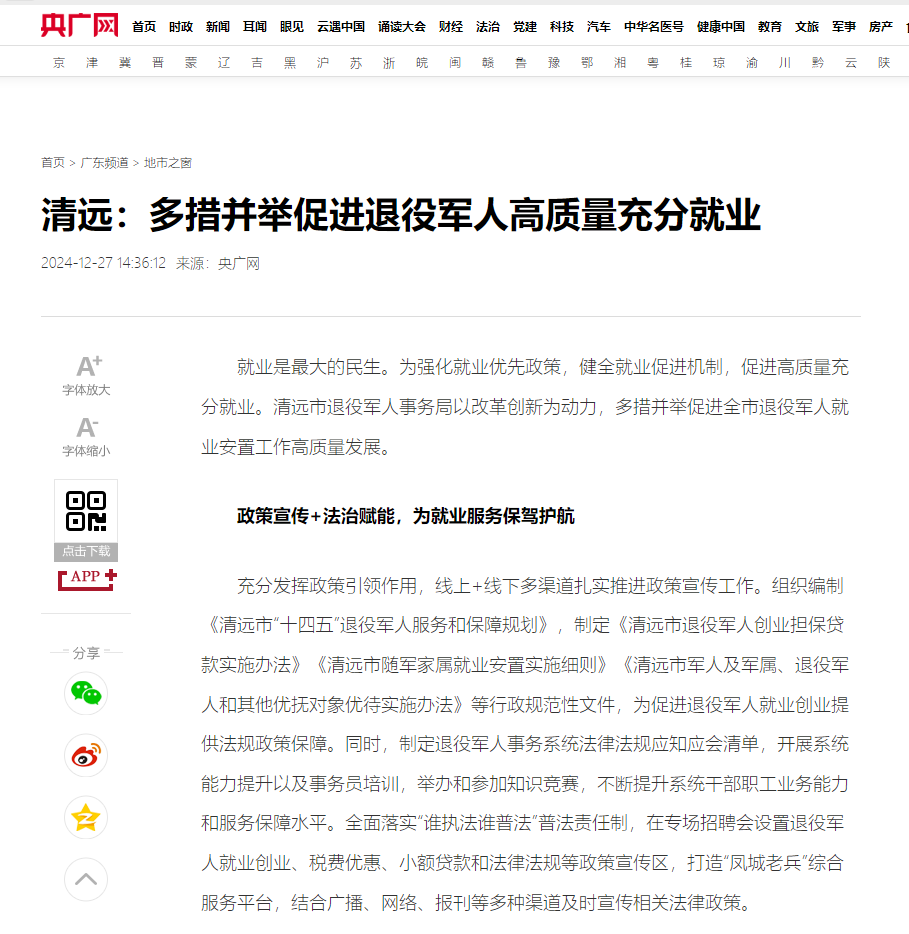 就業(yè)是最大的民生。為強(qiáng)化就業(yè)優(yōu)先政策,健全就業(yè)促進(jìn)機(jī)制,促進(jìn)高質(zhì)量充分就業(yè)。清遠(yuǎn)市退役軍人事務(wù)局以改革創(chuàng)新為動力,多措并舉促進(jìn)全市退役軍人就業(yè)安置工作高質(zhì)量發(fā)展。