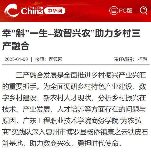 三產(chǎn)融合發(fā)展是全面推進(jìn)鄉(xiāng)村振興產(chǎn)業(yè)興旺的重要抓手。為全面調(diào)研鄉(xiāng)村特色產(chǎn)業(yè)建設(shè)、數(shù)字鄉(xiāng)村建設(shè)、新農(nóng)村人才現(xiàn)狀,分析鄉(xiāng)村振興在技術(shù)、產(chǎn)業(yè)發(fā)展、人才培養(yǎng)等方面存在的問(wèn)題與原因,廣東工程職業(yè)技術(shù)學(xué)院商務(wù)學(xué)院“為農(nóng)弘商”實(shí)踐隊(duì)深入惠州市博羅縣楊僑鎮(zhèn)康之云鐵皮石斛基地,助力數(shù)商興農(nóng),勇?lián)鷷r(shí)代使命。