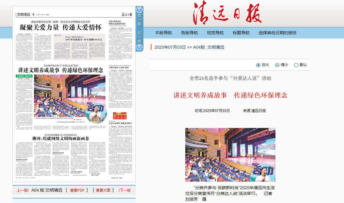 6月30日下午,“分類齊參與·低碳新時尚”2025年清遠市生活垃圾分類宣傳月“分類達人說”活動在清遠市文化館小劇場舉行,來自清遠市各縣(市、區(qū))各行各業(yè)及省職教城各高校的26名選手同臺競演,用生動的語言講述垃圾分類文明養(yǎng)成的故事,用真摯情感傳遞綠色環(huán)保的理念。