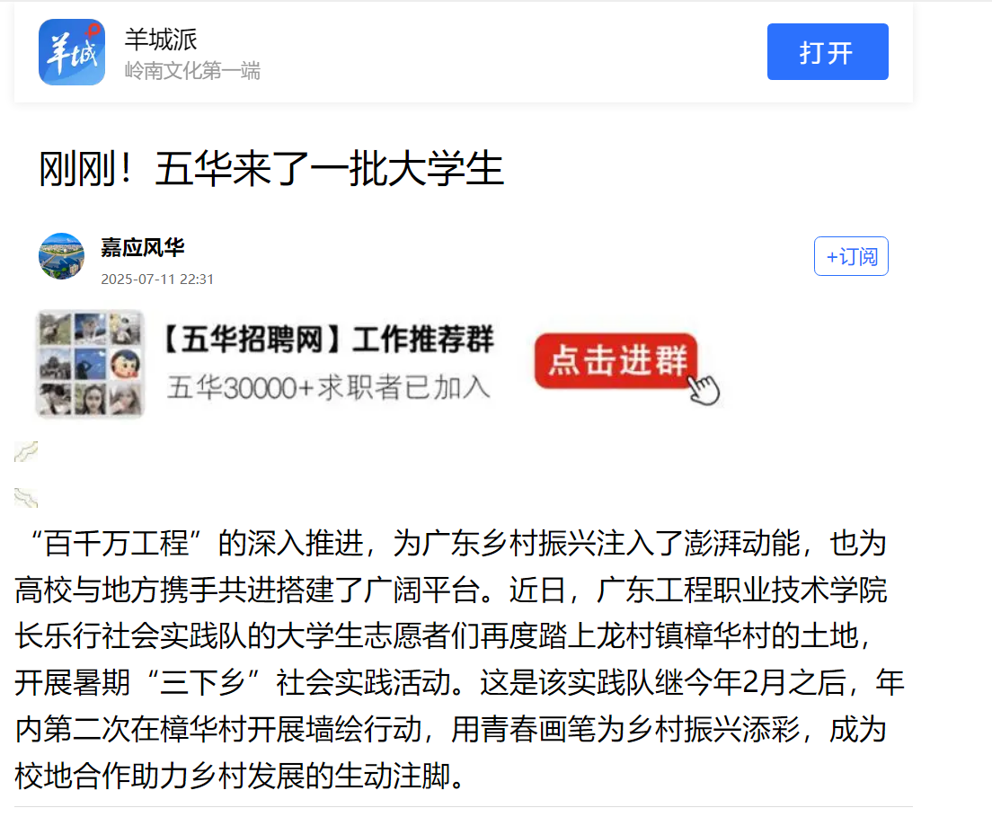 “百千萬工程”的深入推進(jìn),為廣東鄉(xiāng)村振興注入了澎湃動能,也為高校與地方攜手共進(jìn)搭建了廣闊平臺。近日,廣東工程職業(yè)技術(shù)學(xué)院長樂行社會實(shí)踐隊(duì)的大學(xué)生志愿者們再度踏上龍村鎮(zhèn)樟華村的土地,開展暑期“三下鄉(xiāng)”社會實(shí)踐活動。這是該實(shí)踐隊(duì)繼今年2月之后,年內(nèi)第二次在樟華村開展墻繪行動,用青春畫筆為鄉(xiāng)村振興添彩,成為校地合作助力鄉(xiāng)村發(fā)展的生動注腳。