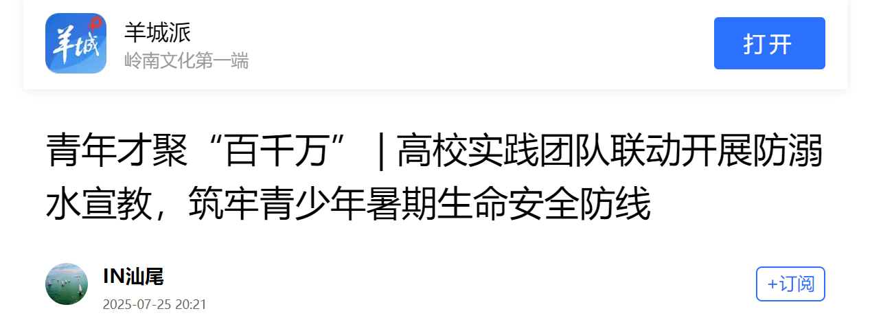 廣東外語職業(yè)技術(shù)學(xué)院“星愿筑夢”實(shí)踐隊(duì)在陸豐市甲子鎮(zhèn)開展防溺水主題活動(dòng),實(shí)踐隊(duì)先講解溺水高發(fā)場景并“破除”認(rèn)知誤區(qū),幫助同學(xué)們認(rèn)清溺水風(fēng)險(xiǎn);隨后現(xiàn)場演示心肺復(fù)蘇,從步驟講解到模型演示呈現(xiàn)操作要點(diǎn),不少同學(xué)在指導(dǎo)下體驗(yàn)練習(xí)人工呼吸和胸外按壓。活動(dòng)最后,大家表示學(xué)到了實(shí)用的防溺水知識與心肺復(fù)蘇技能,也認(rèn)識到“生命安全無小事”,并被提醒防溺水需落到實(shí)處,包括不私下水、不去陌生水域、結(jié)伴互護(hù),遇險(xiǎn)不盲目施救、優(yōu)先求助。