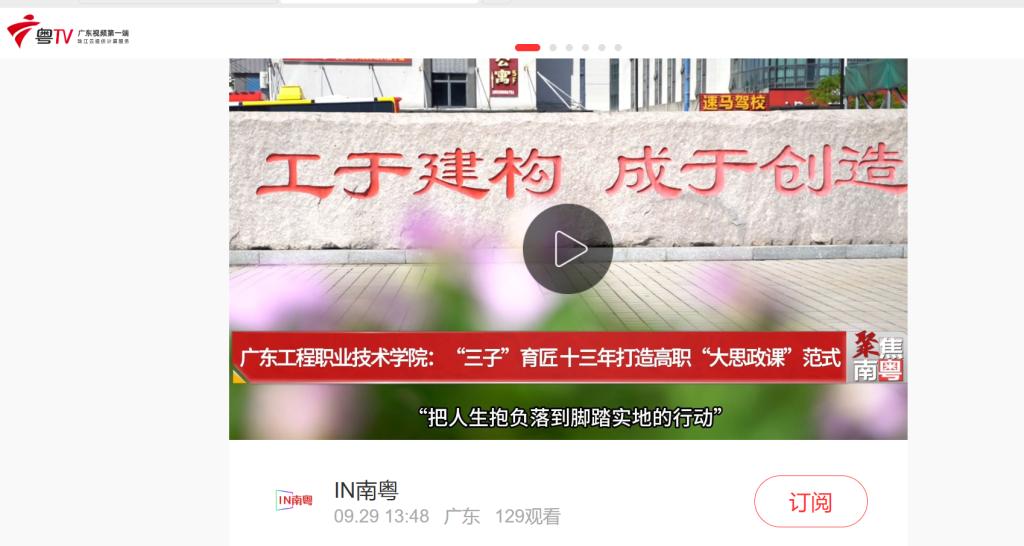 2025年9月29日《廣東廣播電視臺(tái)》播出《廣東工程職院:“三子”育匠 十三年打造高職“大思政”范式》,報(bào)道了我校大思政課與人才培養(yǎng)深度融合相關(guān)育人舉措。