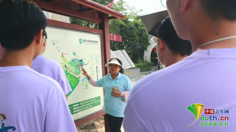 圖為工作人員在介紹國(guó)醫(yī)小鎮(zhèn)中草藥植物的分布情況。薛志銘供圖
