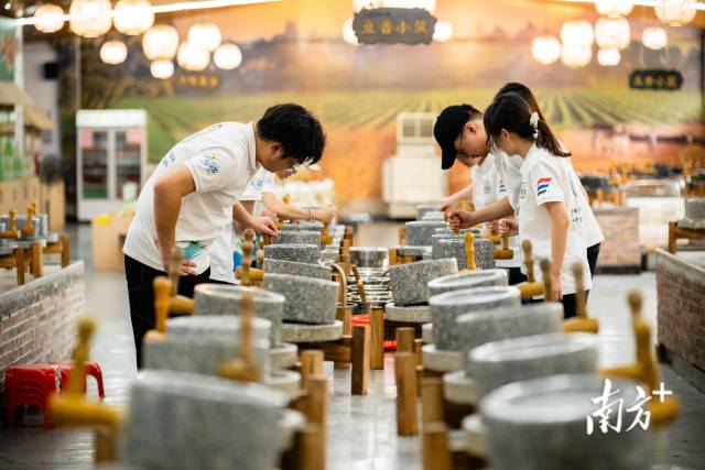 廣州新華學(xué)院學(xué)子在廣九豆工坊調(diào)研。英德市文明辦 供圖